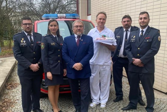 i návštěvníků se podařilo vybrat celkem 60 000 Kč, které hasiči slavnostně předali nemocnici, spolu s drobnými dárky určenými pro herní terapii.